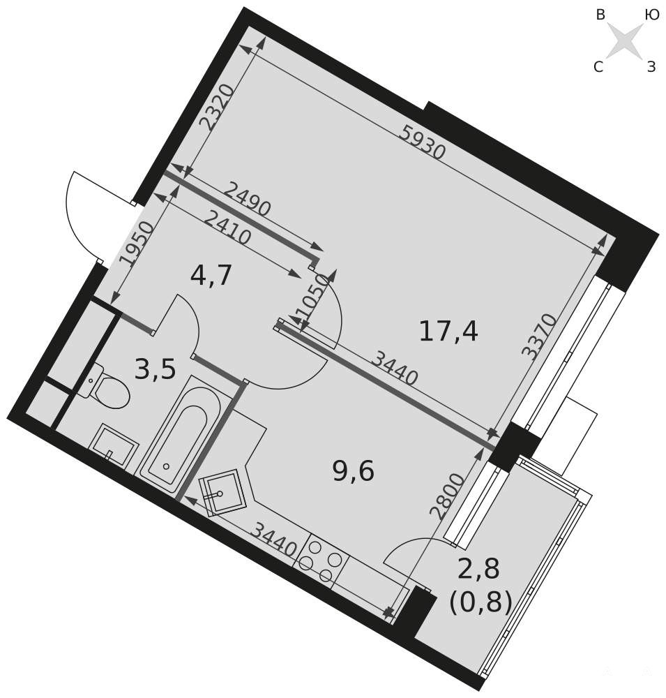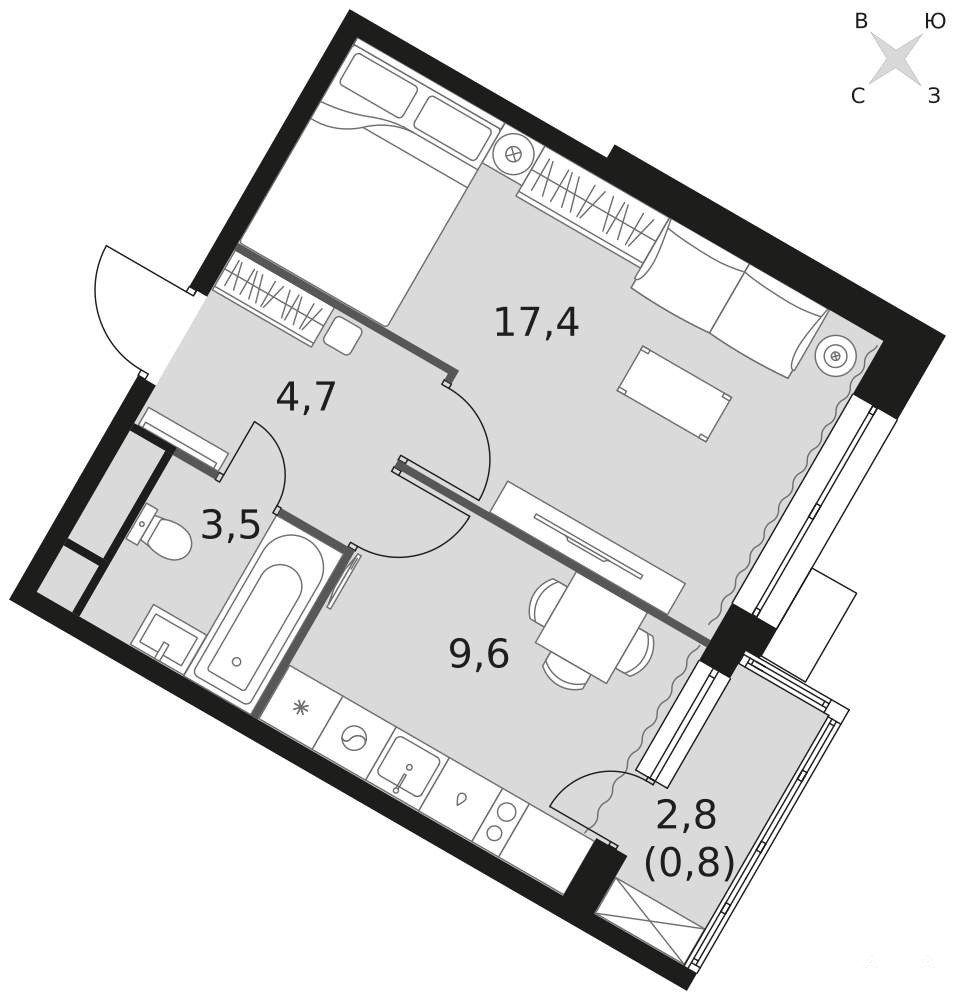 - 17.4 м²