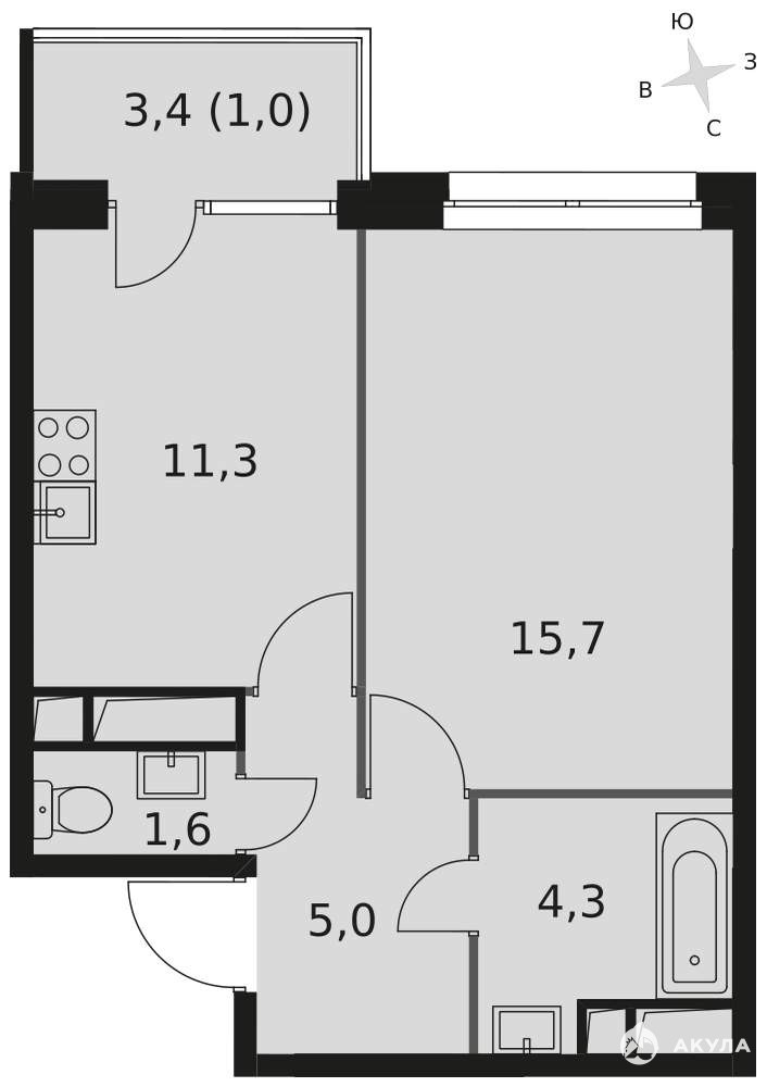- 11.3 м²